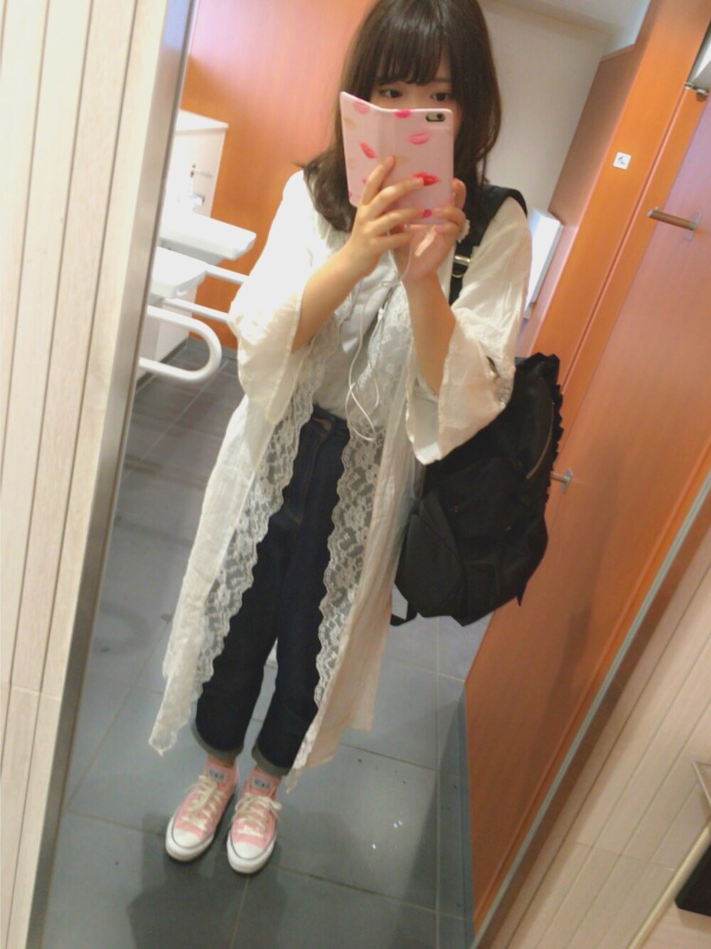 暑いです〜〜😭😭 去年買ったw closetのガウンを久しぶりに着てみました♡ tシャツ楽チンだいすき!!!