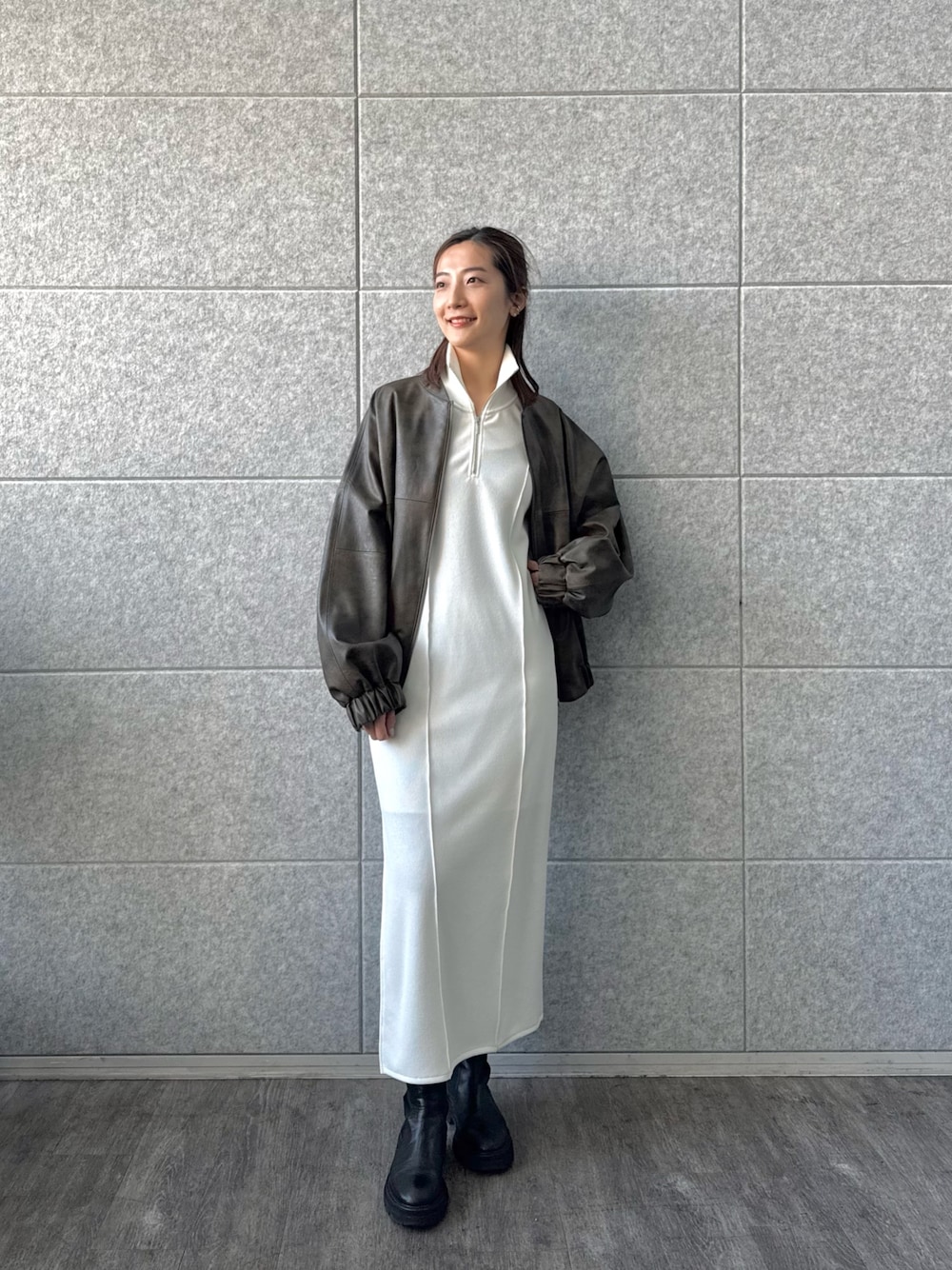 ◆Re grain zip over blouson◆ ヴィンテージレザーのようなフェイク!見た目によらず、とても軽い素材感で端境期に活躍します◎ フリーサイズですが、ゆったりしたオーバーサイズのため重ね着もしやすいです! 袖やセンターバックのファスナーで開閉できるため着こなしのアレンジも楽しめます◎ ◆high neckjersey dree◆ ストンと落ちるストレートラインのシルエットです。生地感はやや薄手ですが、ペチコートが付いているので一枚着でも安心です◎右側に深めのスリットがあるのでパンツのレイヤードスタイルもおすすめです。