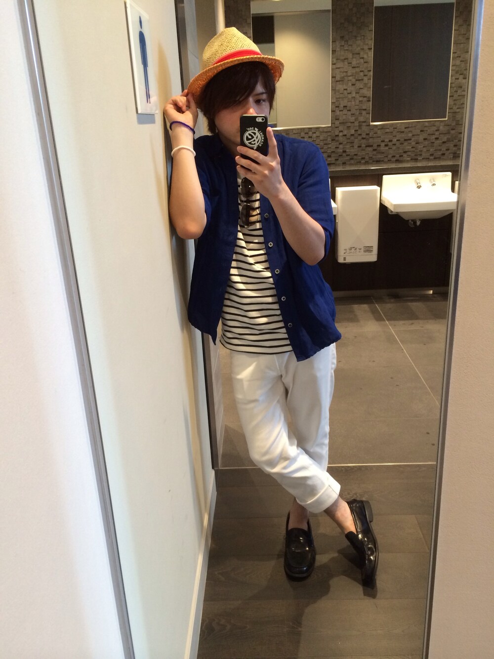 おはよーございまーす! 2回目の更新になります! 先日更新しようと思ってそのまま放置してましたσ(^_^;)ww 今回もブルー×ホワイトでのコーデ☆ 夏っぽさを表現したくてインナーにマリンボーダー、、涼しげなハットを被って今にも海に行きそうなスタイルです♪ 良かったらコメント&セーブよろしくです☆