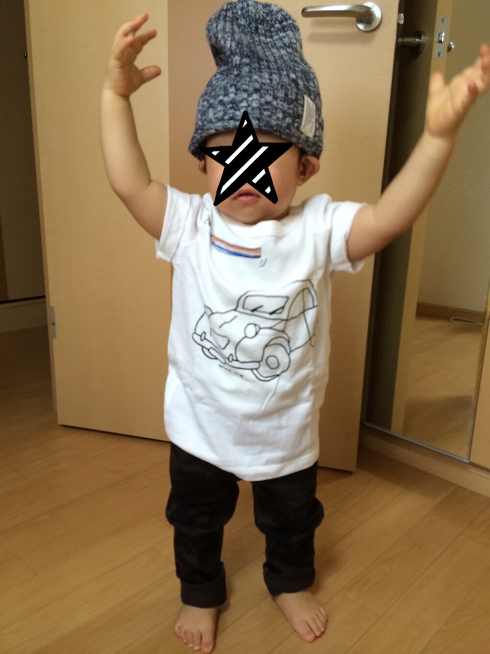 めーっちゃ久々の更新。 西松屋行ってパンツとニット帽getしたらコーデしたくなった♫ カモフラパンツの色がイマイチ写真じゃ伝わらない(>_<)かなりツボな色味♡ 裸足だしなんかブレてるし久々の更新にアタフタ(笑) やっと服が似合う(笑)体型になってきた٩꒰⍢ ꒱۶⁼³₌₃