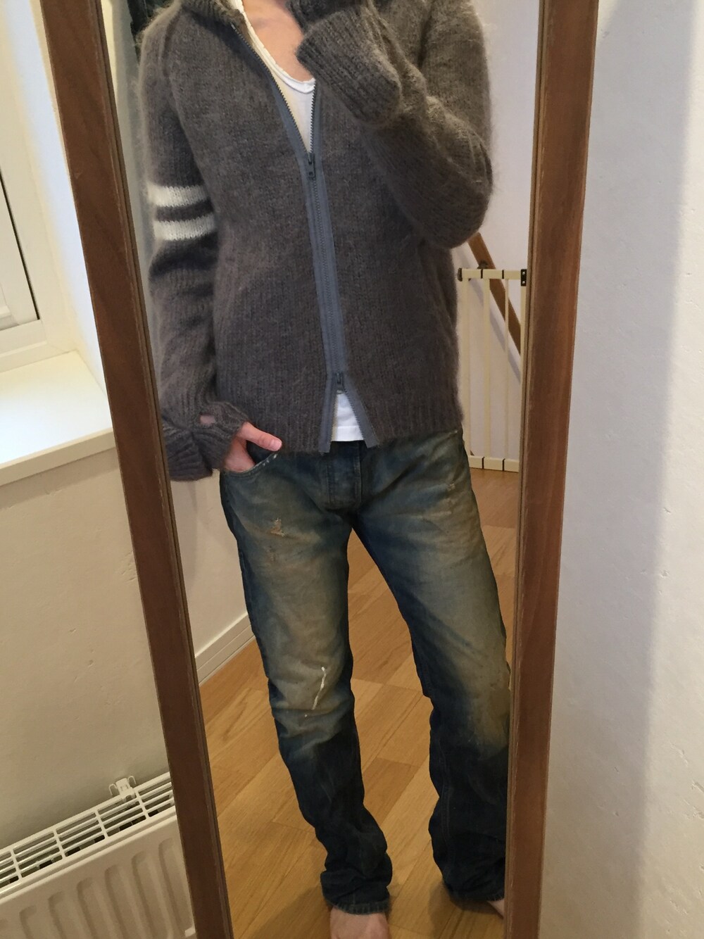 ARMEDのニットパーカー。ニットのパーカーって珍しいかなと思い購入。手袋搭載ですが正直邪魔ですね、ぼく的には。今更ですが くぅ〜´д` ;