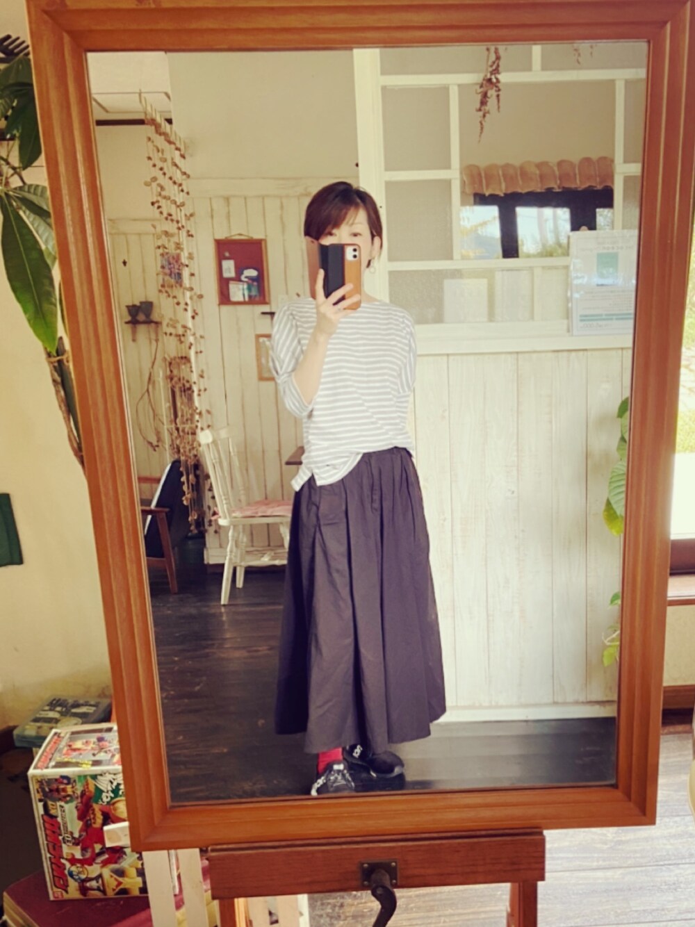 撮りだめコーデです♪♪♪ テグスピアス、どれがメインかわからん写真ですいません💦 いつもの事ですけど…💧💧 トップス、姉にもらったのですが、 グレーのボーダーは初めてなのでちょっと新鮮です☺️ そでのデザインも変わってるんです。 写真じゃ分かりにくいですけど😣 ボーダーて何処行っても誰かと被りますよね〜😭 好きなんですけど警戒してしまう。 この日も下の息子の部活仲間とその家族で ちょっとしたお別れ会BBQをしたのですが、 私含め、4人ボーダー💦💦 しかも私の周りにかたまって座ると言う…。 ちょっと意識しちゃいますね。 めっちゃゲラゲラ言いながら食べてましたけど🤓✌️ で、このコーデもそうですが 赤色ソックス履くのが私の最近のお気に入り💕😚 では、今度の着付けの用意してきます〜〜✋