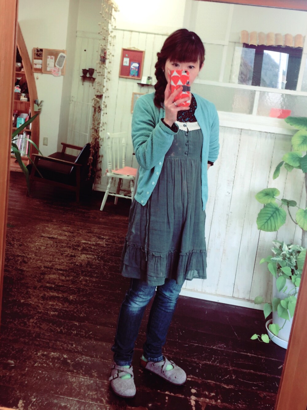 本日のコーデ♪♪ 朝晩はまだ冷えますがホント、あったかくなりましたね〜(*´꒳`*) 今日はグリーンがメインカラーです。 ちょっと春らしい? キャミチュニック、ちょっと透けるので下も気を使いますが軽くてふわふわで着心地いいんです♪(´ε` ) 胸あたりのレース♪ 私の大好きなレース❤️❤️❤️ それにクルミボタン。 うーー、可愛い😍 で、下に着たカットソーの襟にも涙型、2つボタンのポイントがあってこのデザインと色味が何とも好きなんです〜(*´꒳`*) いや〜、春っていいなぁ〜〜♪(๑ᴖ◡ᴖ๑)♪