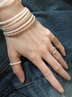 好きなもの パールネックレス シルバーとゴールドのアクセサリー デニム 靴