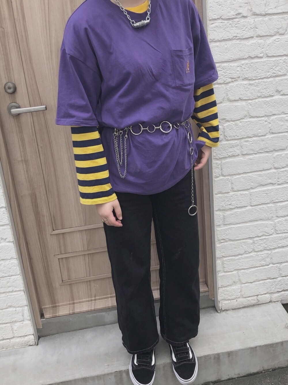 Saya.SuzukiのTシャツ/カットソー「WEGO/ボーダービッグシルエットロングTシャツ」を使ったコーディネート