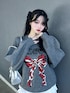 可愛すぎてめちゃ愛用してるニット! 着やすいし飾らない感じなのに 可愛いリボン柄なのたまらなあ! 色も可愛い◎