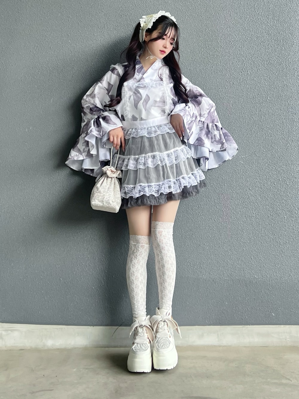 浴衣?!となる着こなしですけどセパレート浴衣の上+チュールミニスカート+チュールエプロンでできてます♡ 可愛すぎて推し活とかテーマパークとかライブとか何でも大優勝すぎるから 絶対買って(真顔) 6/26 19時販売開始です。エプロン、浴衣同時発売!