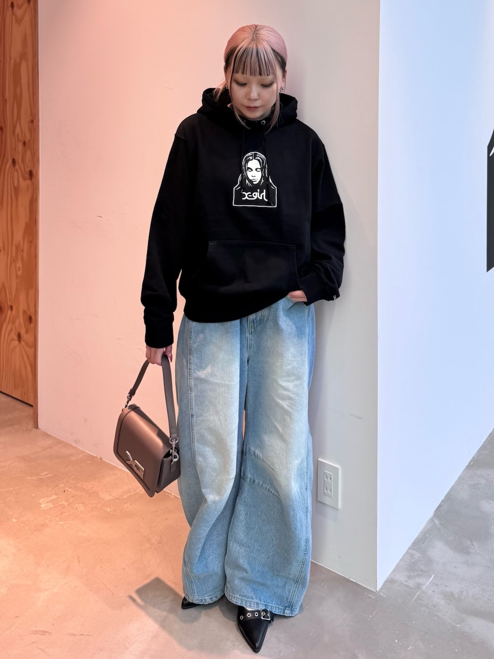 サエピ(XLARGE/X-girlなんば(X-girl))のパーカー「FACE PATCH SWEAT HOODIE」を使ったコーディネート