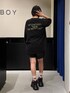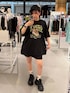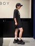 スリーピーキャットTシャツを使ったコーデ🐈⬛🐾 【トップス】 猫ちゃんのお顔がとても印象的で可愛いTシャツです❣ 今回はLサイズをワンピースぽく来てみました👌🏻 骨格ストレートさんはビッグシルエットTシャツを着ると着太りしてしまうので、下はショートパンツで脚を見せながら厚底も合わせると着痩せ効果狙えます🙆🏻♀️✨
