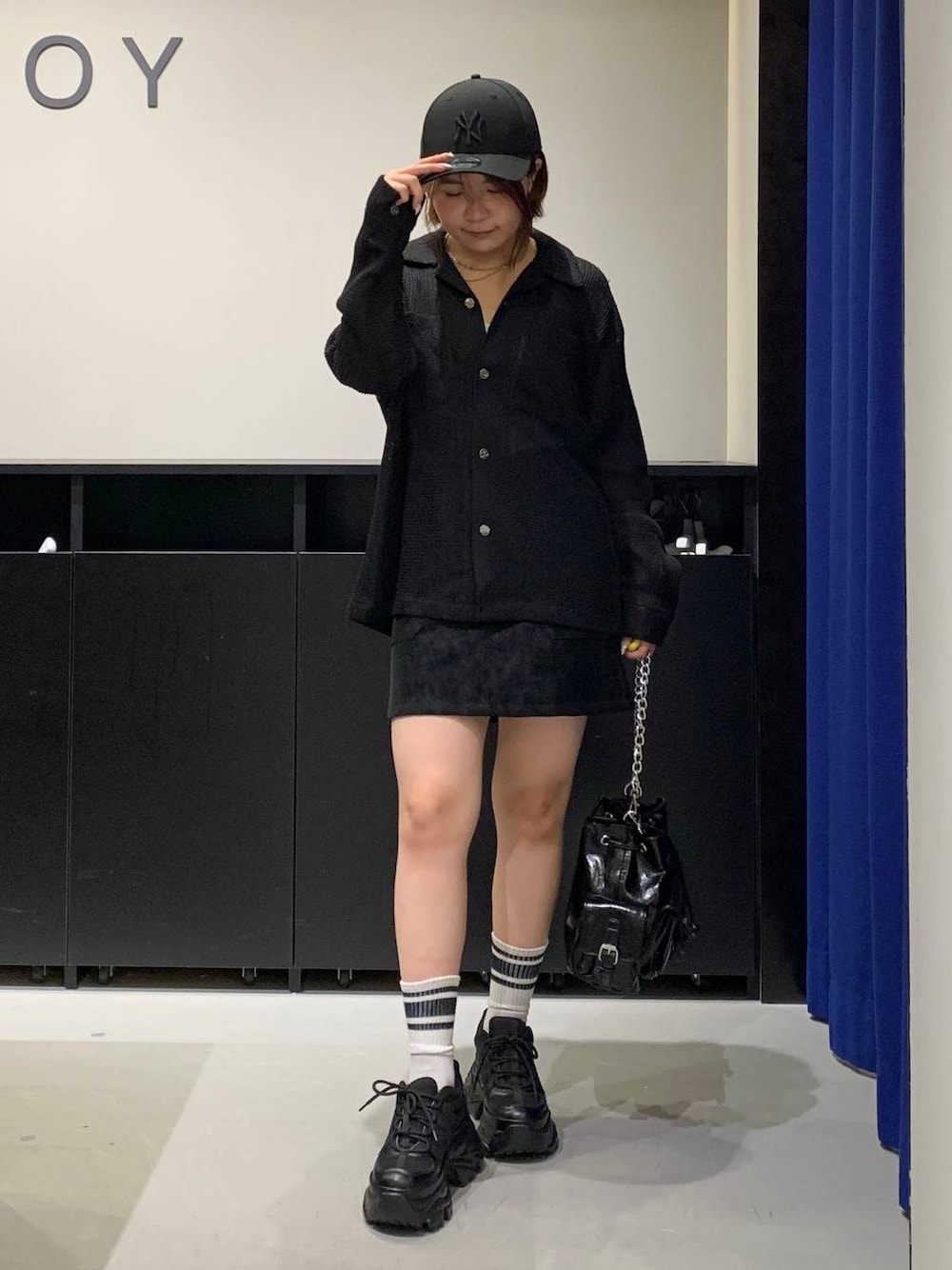 オールブラック秋コーデ🖤 【トップス】 透かし編みのニットシャムです! 前開きになっているので、1枚でもインナーを入れて前開きで羽織としても使っていただけます🙆🏻♀️✨ 【ボトムス】 スエード生地が秋っぽいデザインのスカートです🖤 太ももをしっかりと隠してくれるので脚が筋肉質な骨ストの私でも脚の一番太い部分を隠しながら履けちゃうミニスカートです😭✨