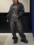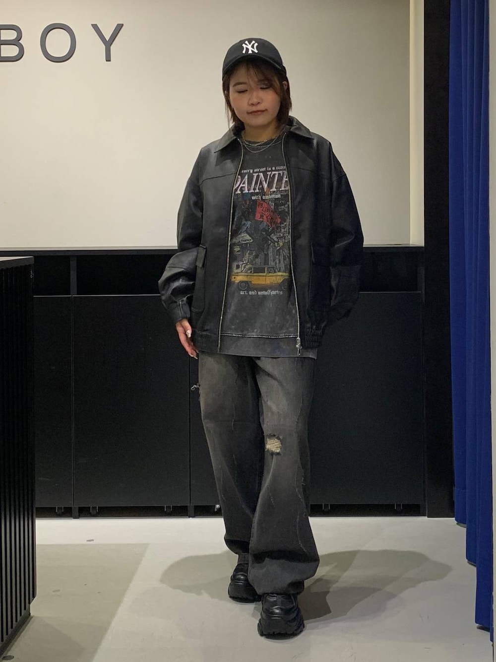 ヴィンテージブルゾンを使ったメンズライクコーデ🖤 【アウター】 生地が軽くて肩こりの心配もナシ・ヴィンテージ加工と大きめのポケットデザインがおしゃれな今季のレザーブルゾンです‼️ ダブルジップなので、中に着るトップスも程よく見せつつ着用していただけます⭕着用しているフリーサイズはゆったりめサイズなので中にトレーナーや厚手のニットも合わせていただけます✨
