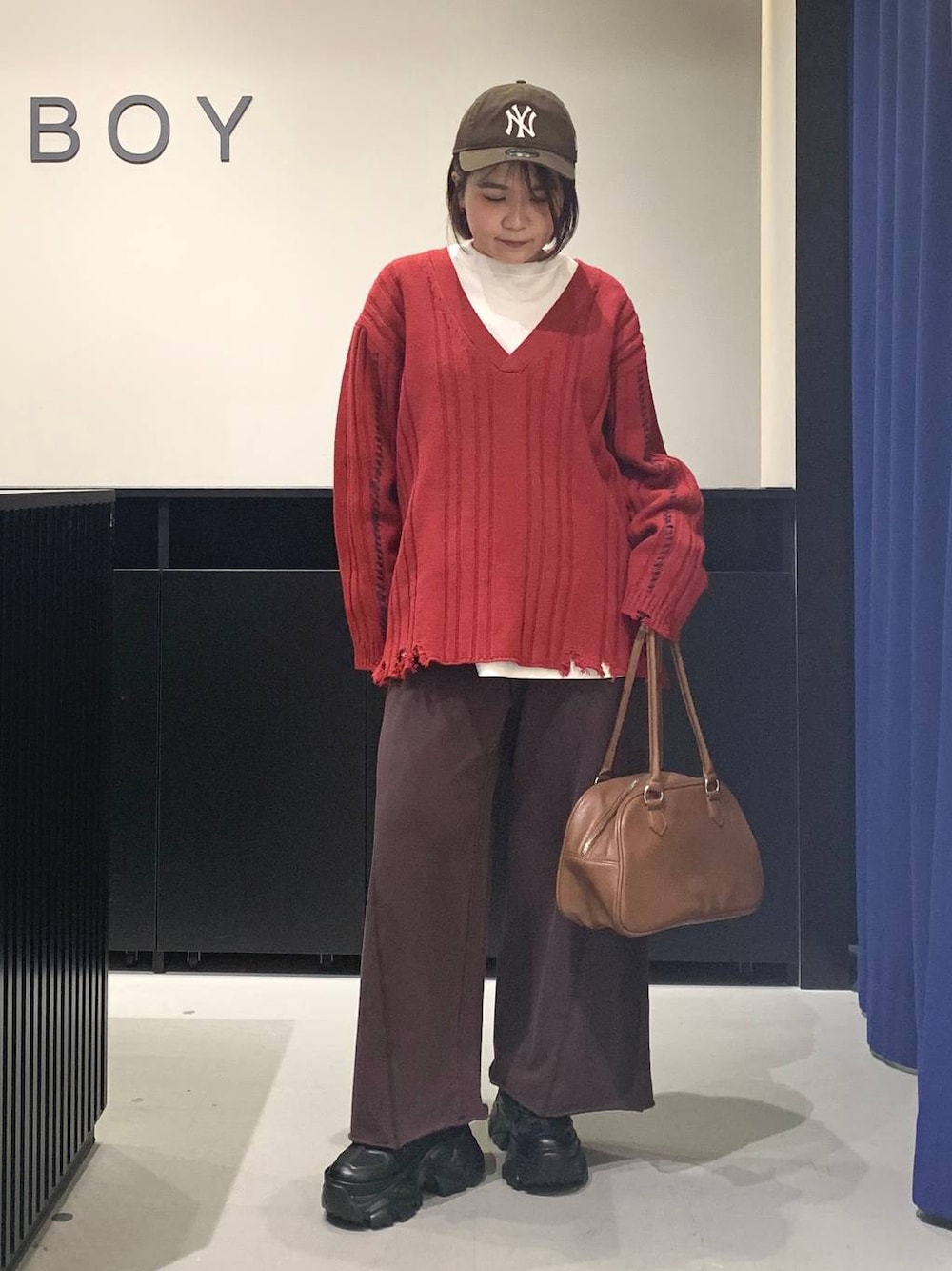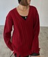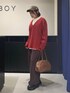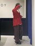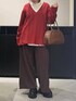 赤ニットコーデ❤ 【トップス】 ゆるっとしたサイズ感ともっちりした触り心地が気持ちいいニットです✨ 裾と袖口についているダメージや袖のステッチデザインもポイントで可愛いです👍🏻 ゆったりサイズなのでインナーを合わせてレイヤードスタイルしていただきやすいです!