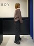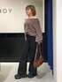 スリーピーシャギーニット新色を使ったコーデ🤎 【トップス】 大人気のスリーピーシャギープルオーバーの新色ブラウンです! 首元はリブになっているので、ワンショルやオフショルなどアレンジ自在です🙆🏻♀️❤シンプルなのに、シャギーの素材が存在感バツグンなのでボトムスに無地のものでも柄物でも何でも合わせていただきやすいです! 【ボトムス】 大人気スリムレッグフレアデニムの新色です!🖤 このデニムを履くだけで、脚長効果・スタイルアップが叶っちゃいます😭😭 156cmの私が履いてみると、普通のソールのスニーカーと合わせると靴の半分くらいに被るくらいの丈感・8cmの厚底シューズを合わせると画像のようにぴったりめで履くことができました!
