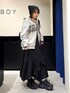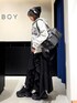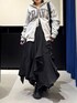 ジグフリティアードスカートを使ったコーデ🖤 【ボトムス】 斜めに入ったフリルデザインが可愛いスカートです✨ ウエストは総ゴムなのでストレスフリーで履ける上に、ベルトループがついているのでウエスト調節をしたりゴム感をなくせたりと機能性抜群です! 今からの時期でも夏までも履いていただけるので長いシーズン愛用していただけます🤍