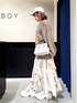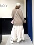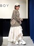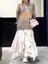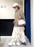 ジグフリティアードスカートを使った春コーデ🤍 【ボトムス】 斜めに入ったフリルデザインが可愛いスカートです✨ ウエストは総ゴムなのでストレスフリーで履ける上に、ベルトループがついているのでウエスト調節をしたりゴム感をなくせたりと機能性抜群です! 今からの時期でも夏までも履いていただけるので長いシーズン愛用していただけます🤍