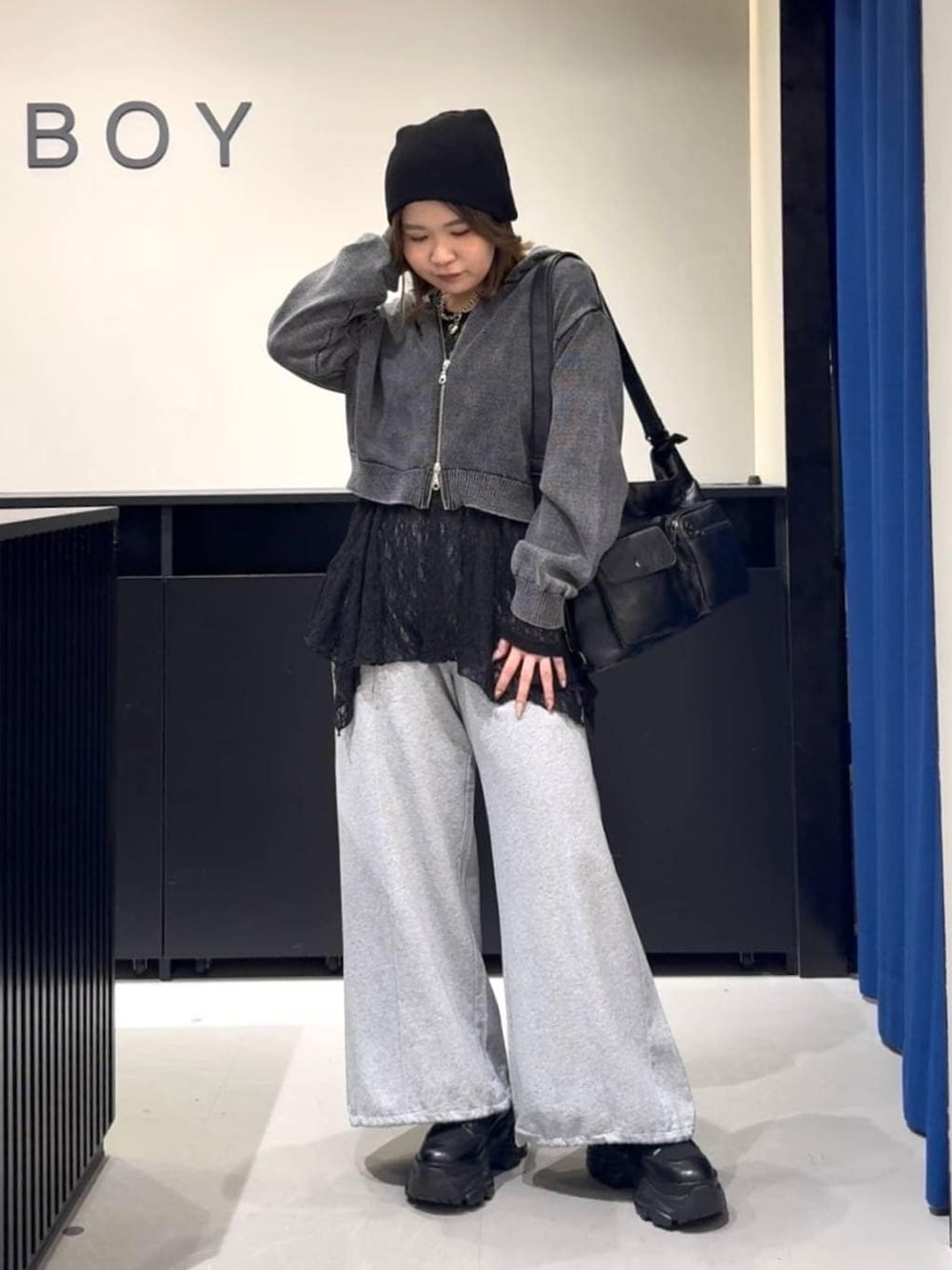 ニットZIPパーカーを使ったコーデ🖤