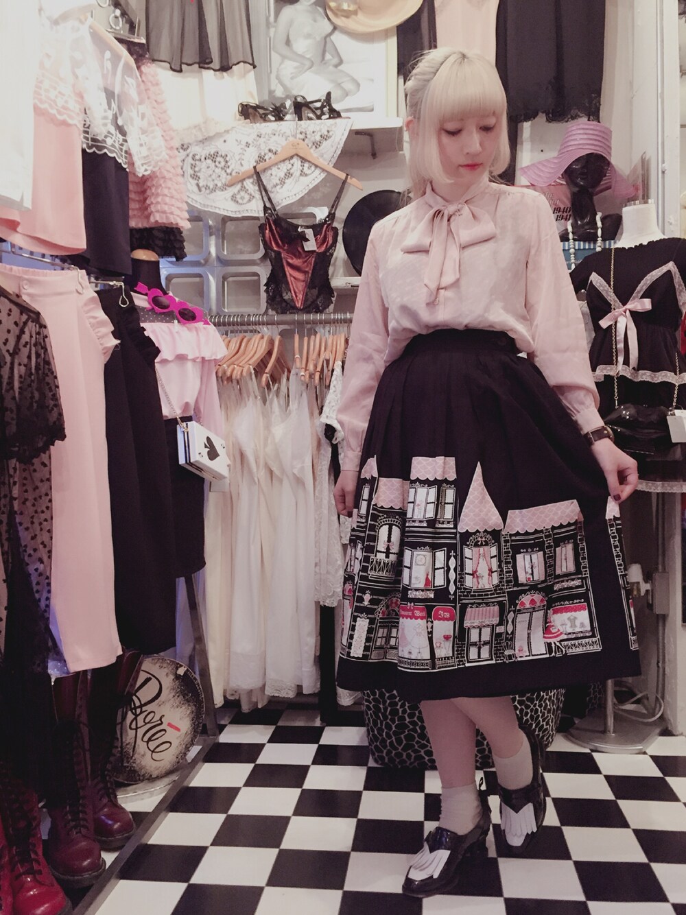 日々の服装に統一感なさ過ぎる我。 ブラウスとスカートの柄のピンクが同んなじやった(^.^)