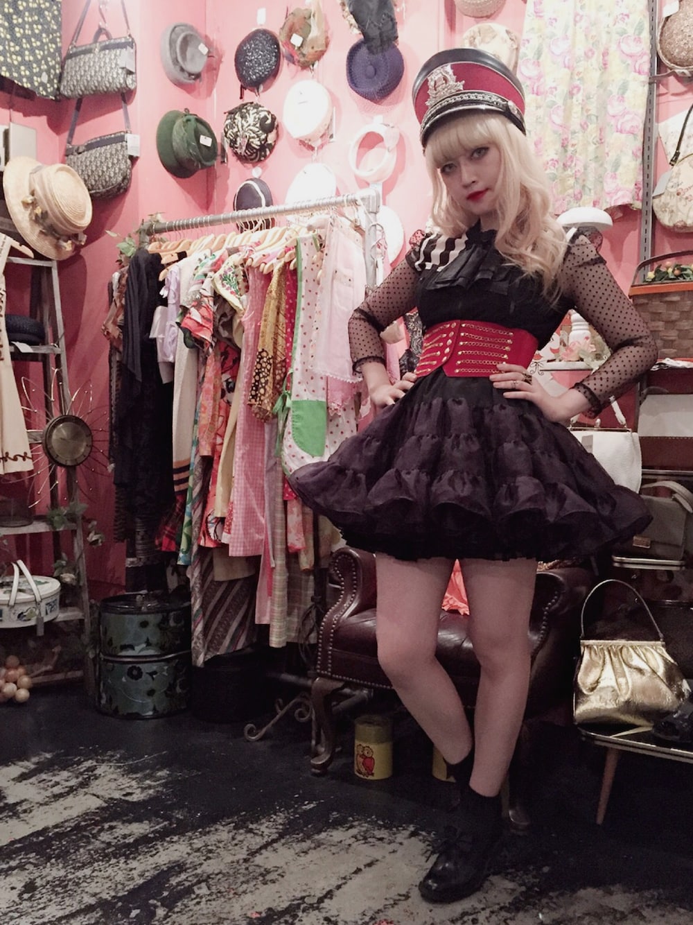 本物のvintageの鼓笛隊ハット!かわいすぎる。赤と黒好き〜