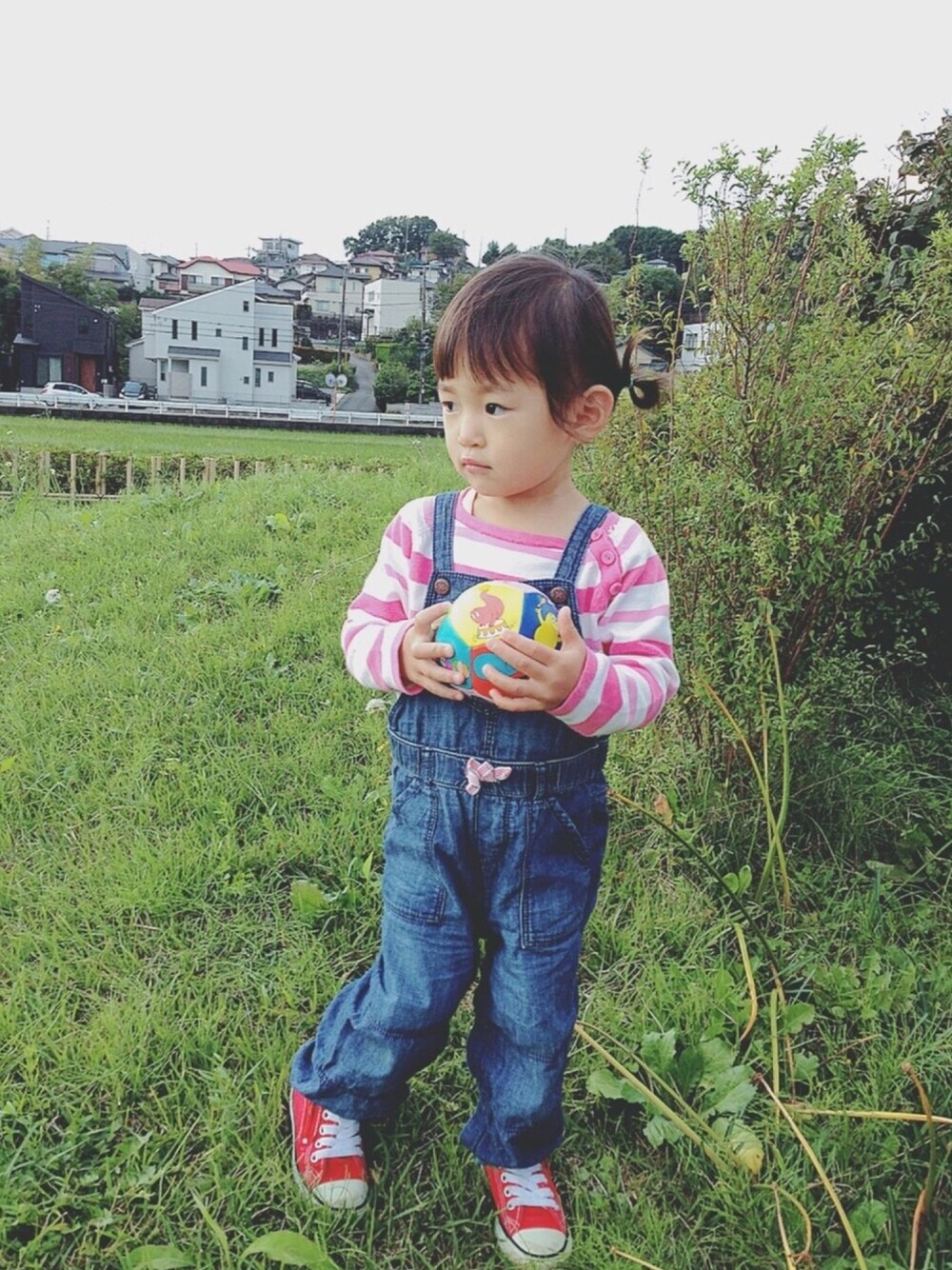 ピンク✖️サロペット 可愛い💕 この時は嫌がらずに お団子をしてくれたのに👧🏻