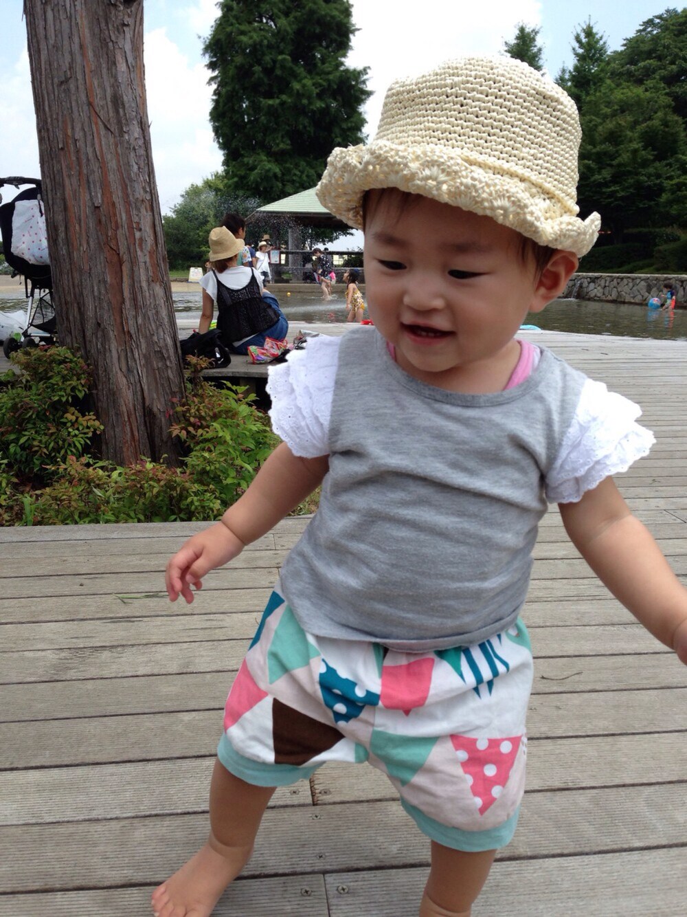やっぱり十中八九、「おとこのこですか?」とか「ぼっちゃん?」と 間違えられます😂😭 まぁ、確かに中性的な顔だしねー おねえちゃんも間違えられたなぁー 珍しく派手なFLAG柄のカボチャパンツを作ってみました😊