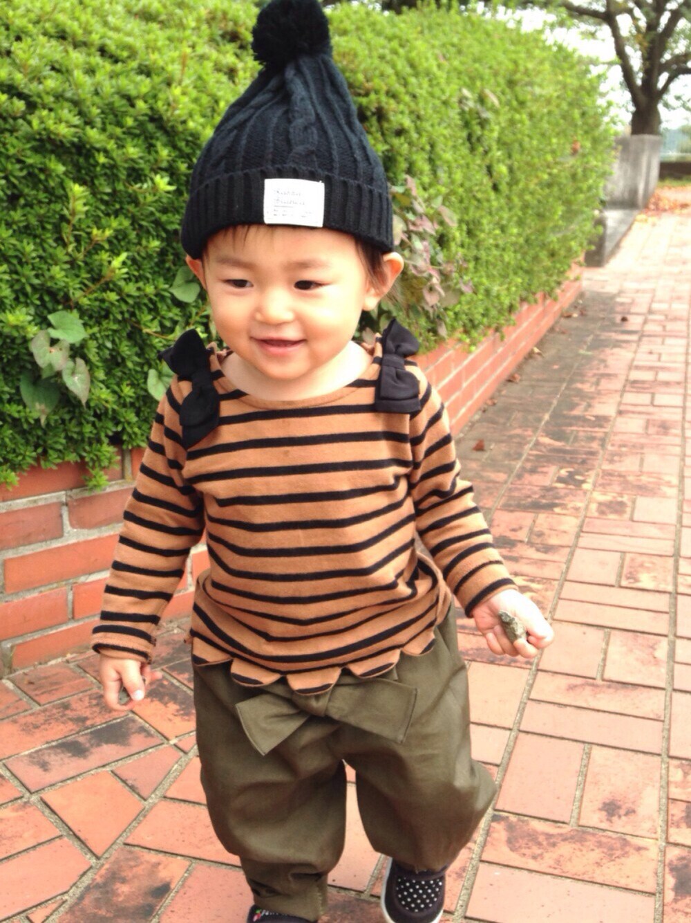 ホント、寒くなりましたね😵 たまらず羽毛布団を出しました。 さてさて、枯葉🍁色コーデ。 渋すぎる‥(*_*)でも好きな色〜💓 公園に行っても枯葉と石を掴んで離さないmiaさんです。 ひさびさにサルエルパンツを 作ってみました👍🏻 縫い目がカーブしていて洒落たズボン👖 大きめに作ったから裾折々ですが💦 リボンを付けてみました💓
