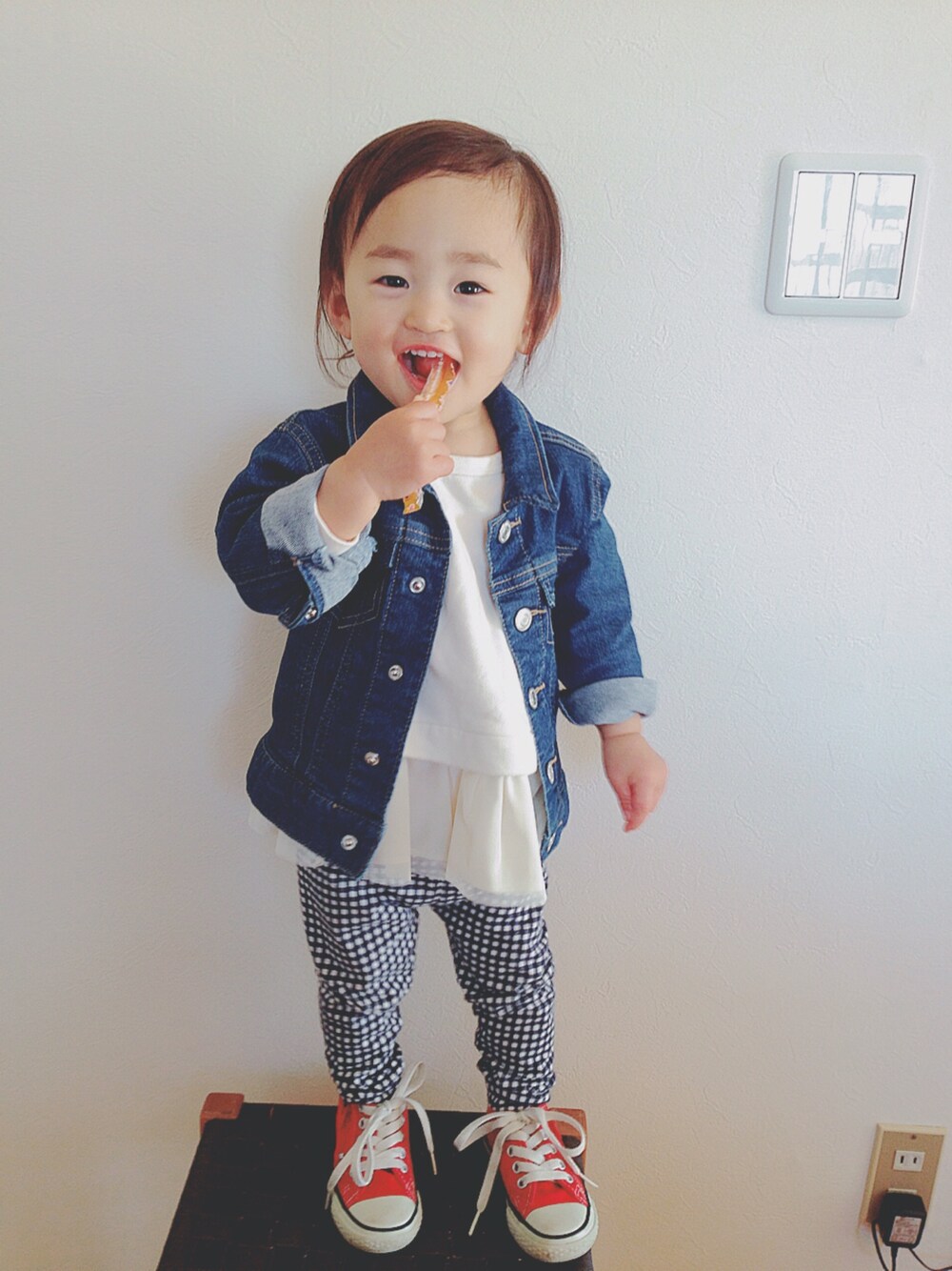 ★mia☺︎★のデニムジャケット「Gジャン(80~140cm)」を使ったコーディネート