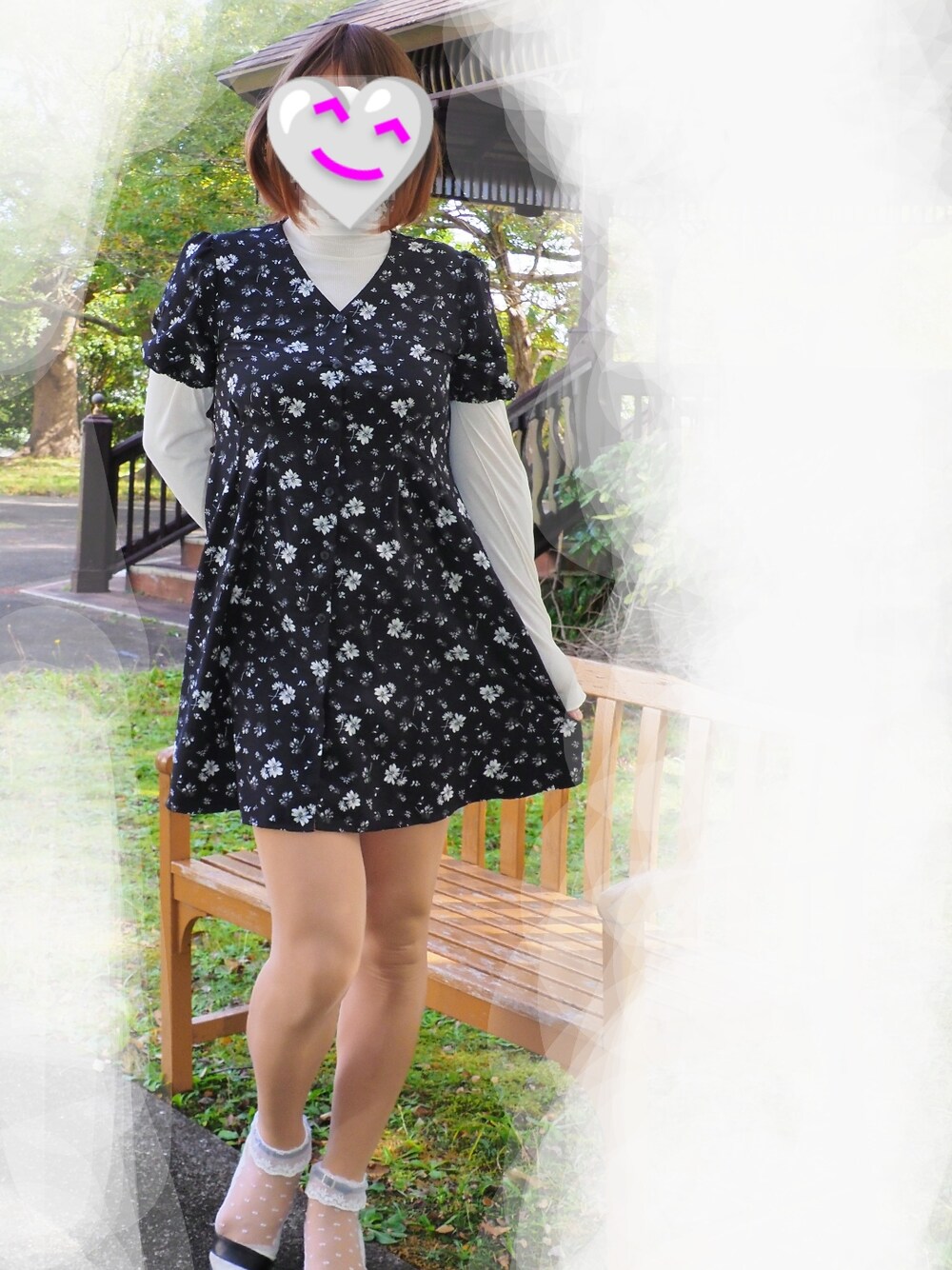 色ちがのワンピース チョト丈が短いけど、ショーパン履いています。