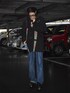 テーラードジャケット×フーディー 上が黒で重たくなりすぎるのを緩和するためにフーディーは首元から胸下まで破いてる物を使用しています。