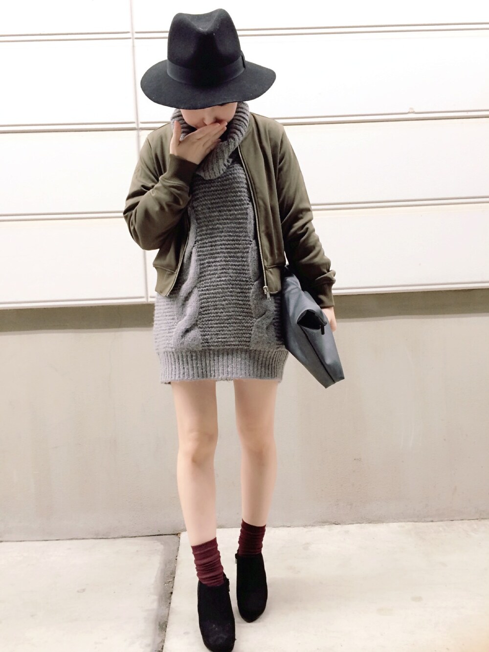 ニットがMサイズOnlyだったので ワンピとして活用\(^o^)/ p.s. 安心してください、 髪の毛ちゃんとありますよ♡ 後ろで低い位置でお団子して まとめてます♪