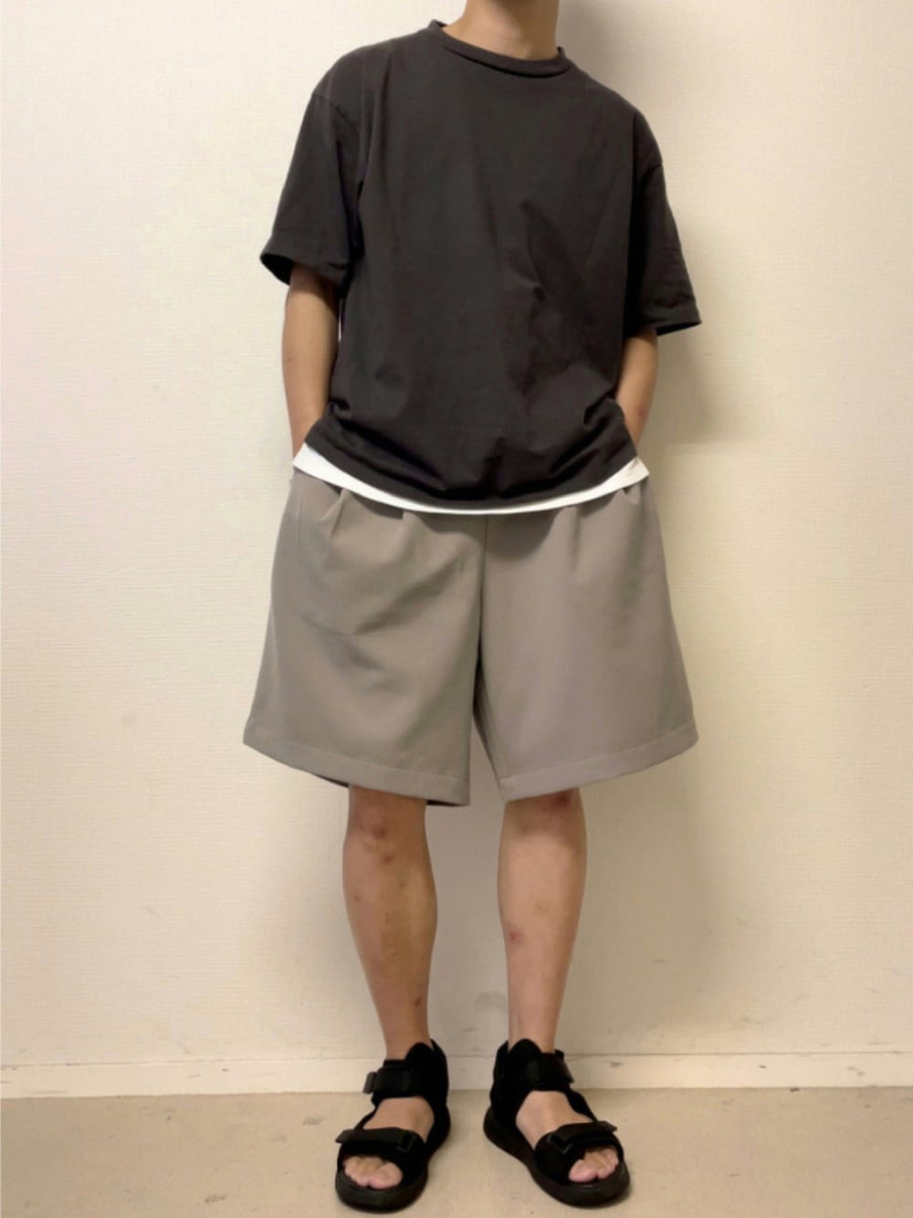 チャコール✖️ベージュ guの白いレイヤードタンクトップにwymのTシャツとショートパンツを合わせてこなれ感を出してみました! ※5つほど足にあるあざみたいなものは蚊に刺されたものになります(笑) 少しでもいいなと思ったらいいねをお願いします✌️ あとインスタグラムもやってます! Instagram▶︎wear_taisuke インスタグラム限定でしか載せてないコーディネートもあるので、よかったらフォローお願いします‼️