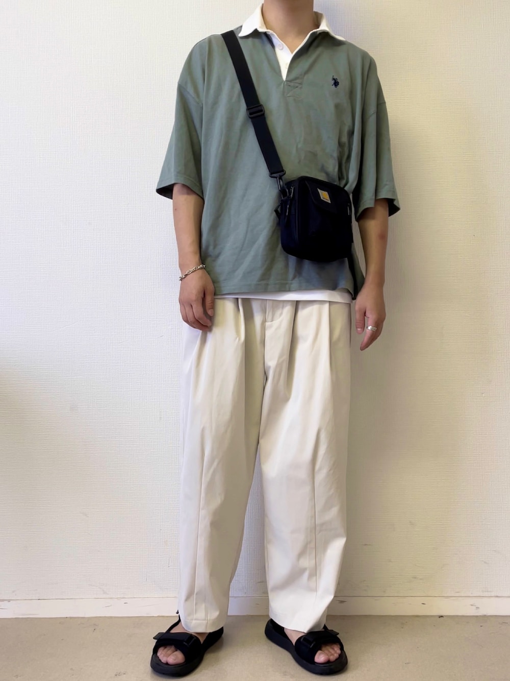 <カラー> ホワイト✖️グリーン <アイテム> ◾︎Tシャツ: freaksstore ◾︎インナー:gu ◾︎パンツ: remer ◾︎サンダル: niko and... ◾︎バッグ:carhartt 淡いグリーンのポロシャツに白のワイドパンツを 合わせたトレンド感のあるコーデにしてみました❗️ 少しでもいいなと思ったらいいねをお願いします✌️ <インスタグラム> ◾︎Instagram▶︎wear_taisuke インスタグラム限定でしか載せてないコーデも あるので、よかったらフォローお願いします‼️