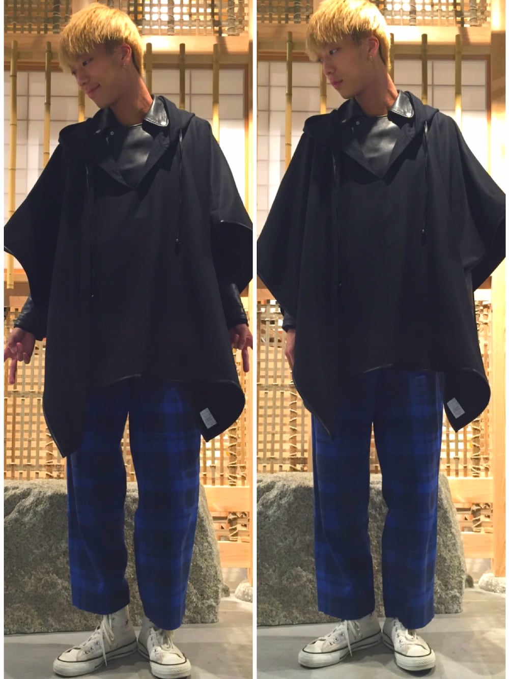 洋服✖︎オシャレ=笑顔😊😊😊 ダブルライダースをインナーに フードポンチョを上から被りました!! なかなか斬新な着方のご提案です( ´ ▽ ` )ノ 是非是非!参考にしてみてください💥💥