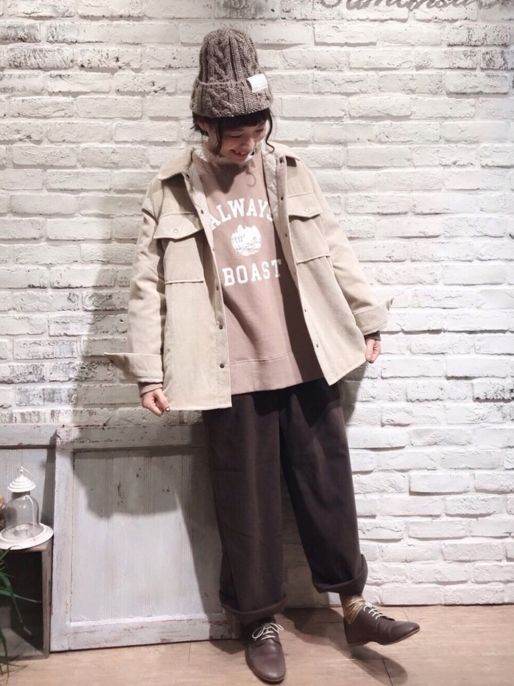 いっしき🐻のニットキャップ/ビーニー「ケーブルニットワッチ」を使ったコーディネート