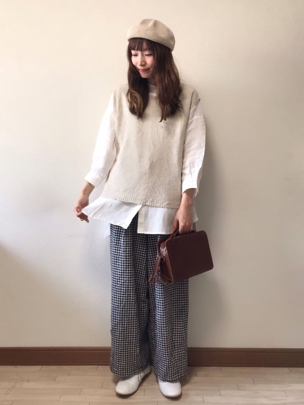 いっしき🐻のニット/セーター「後ろリボンディテールベスト」を使ったコーディネート