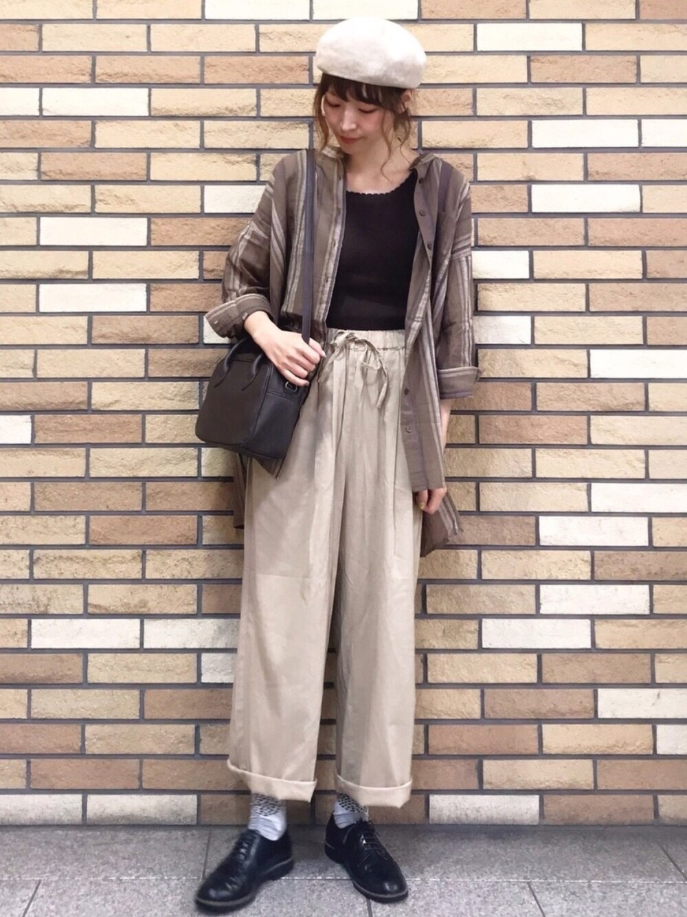 大人ブラウンコーデ🐻 マルチストライプと旬のバンドカラーで おしゃれに見せてくれます♩ 透け感のある薄手の生地は 今の気温でも羽織で使いやすいです◎ -------------------------- ●ディアモール店WEAR● はまなか【@tofu048】 なかお 【@poporasu1192】