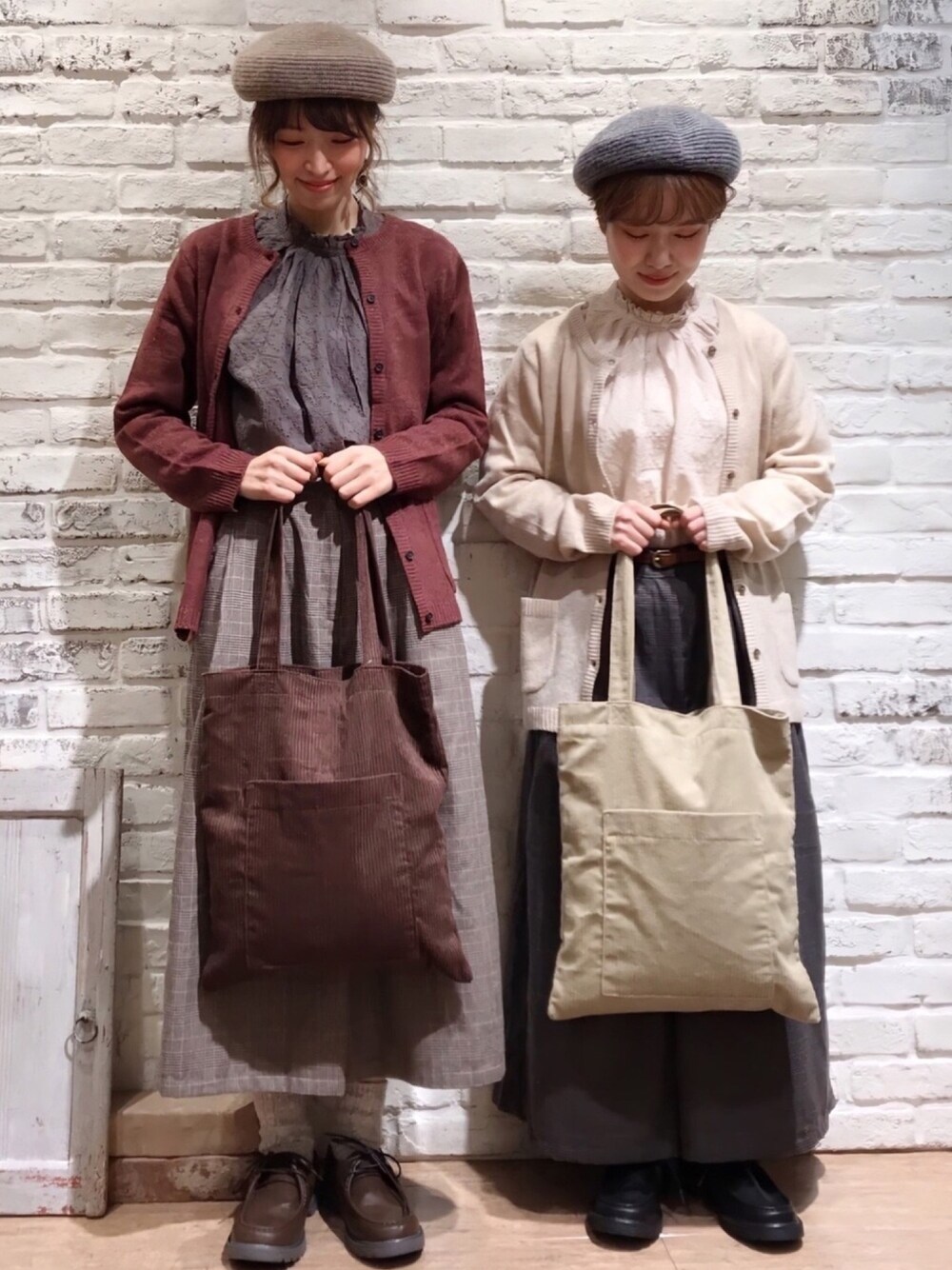 はまなかさん【@tofu048】151cm と双子コーデ🐻🐻 定番のカーディガンに チェックパンツで秋らしく♩ レースブラウスでガーリー要素も 取り入れました* -------------------------- ●ディアモール店WEAR● はまなか【@tofu048】 なかお 【@poporasu1192】