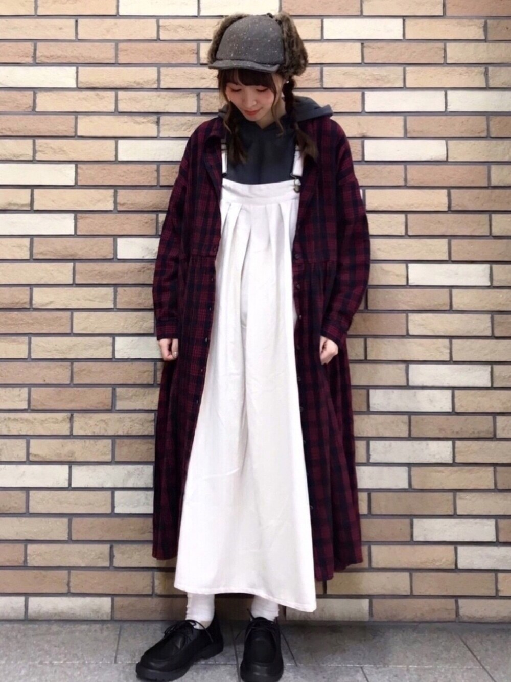 いっしき🐻のワンピース「スタンドネックチェックワンピース」を使ったコーディネート