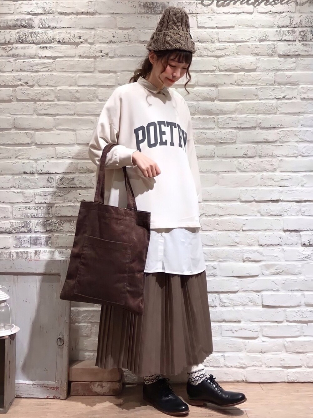 きれいめのプリーツスカートを ロゴスウェットでカジュアルに♩ ピグメント加工なので 古着のような味やこなれ感が出ます◎ ★冬の先行セール開催中★ -------------------------- ●ディアモール店WEAR● はまなか【@tofu048】 なかお 【@poporasu1192】