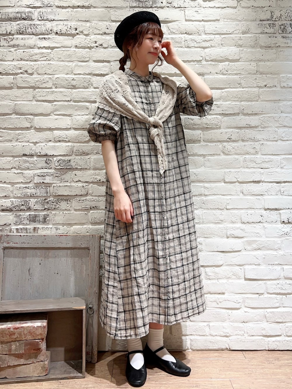 いっしき🐻のハンチング/ベレー帽「ダイヤ柄編みベレー帽」を使ったコーディネート
