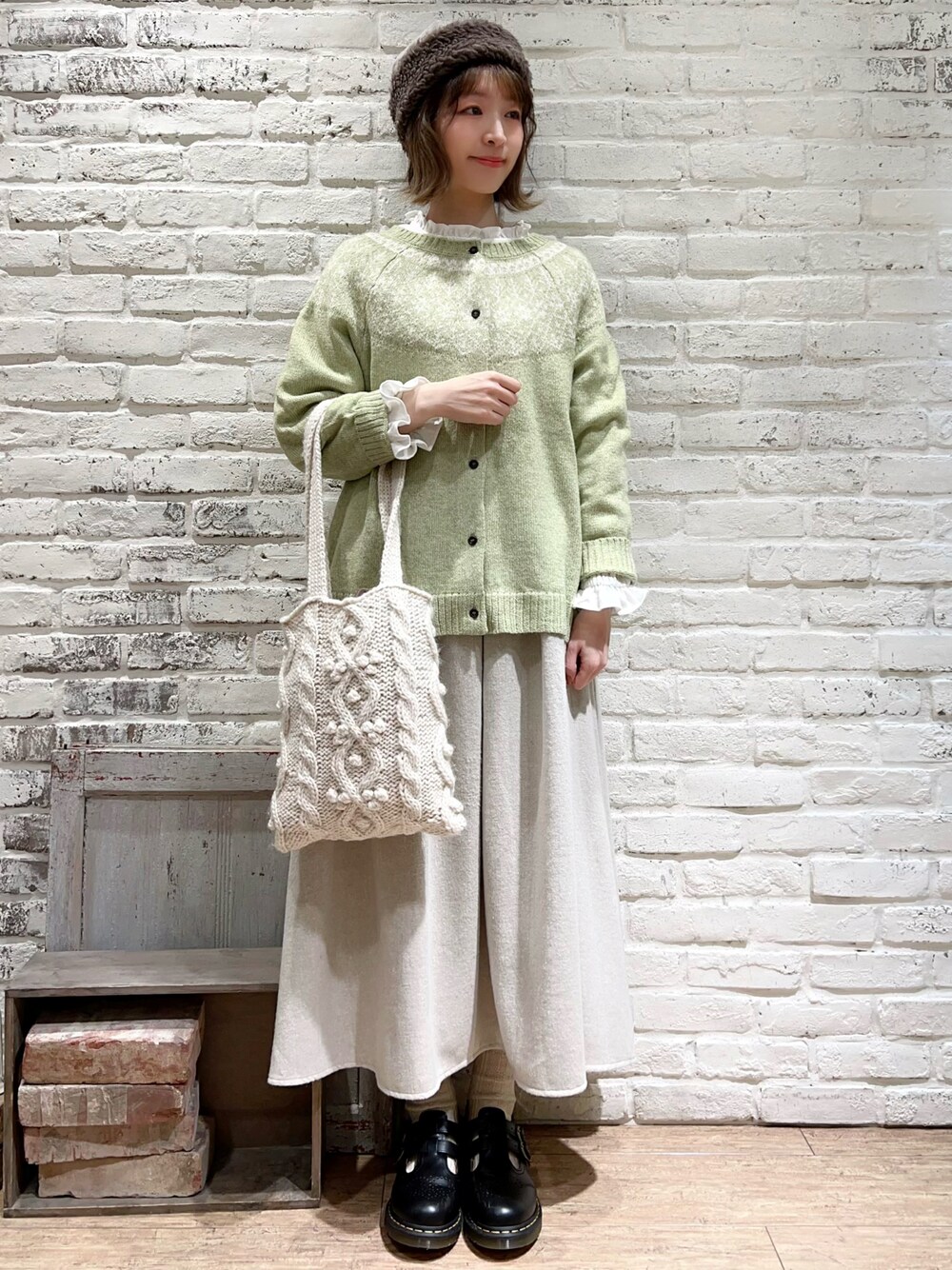 前回のコーデのアウターなしVer.♩ きれいなグリーンのカーディガンを差し色に* 袖を1つ折ってブラウスのフリルを見せました☺︎ ★秋冬もの一部再値下げ★ お待ちしております🐻🦊🐨 -------------------------- ●ディアモール店WEAR● 🐶なかお 【@poporasu1192】 🐨なかごー【@nakago45】 🐻❄️ながや 【@nnno】 🦊ユウキ 【@konamondaisuki】 ●ディアモール店instagram● *小窓のQRコードを読取 *【@sm2_diamorosaka】で検索 *WEARプロフィールの個人インスタからもとべます✈︎
