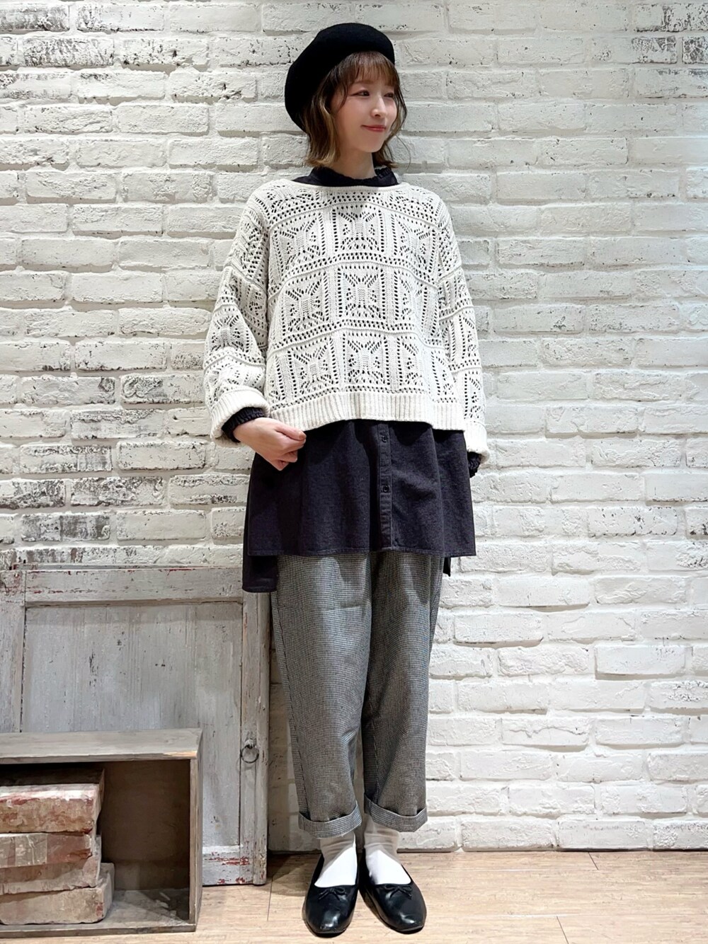 いっしき🐻のニット/セーター「前後着透かしニット」を使ったコーディネート