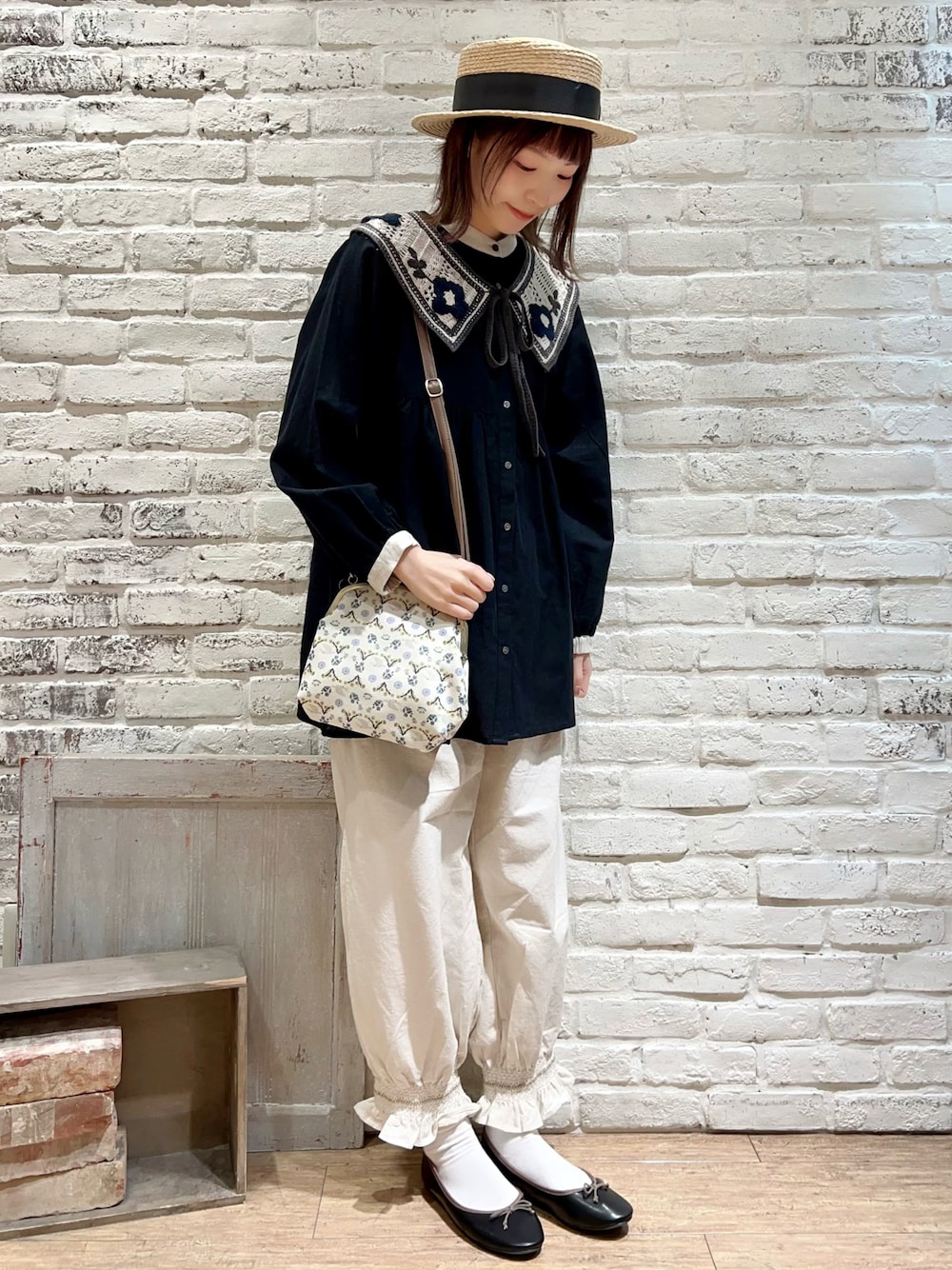 いっしき🐻のストール/ショール「さがら刺繍付け襟」を使ったコーディネート