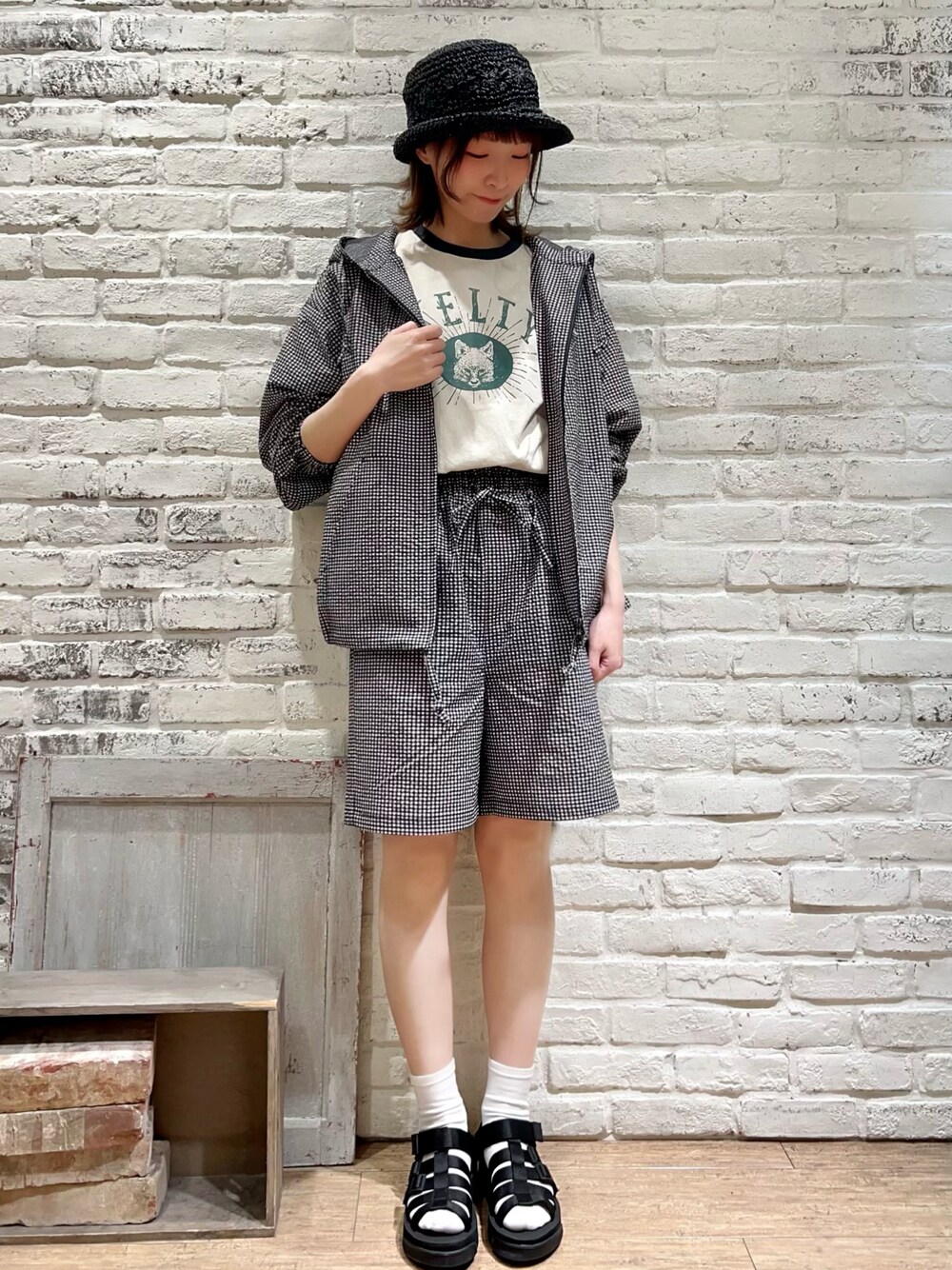 いっしき🐻のハット「柄編みバケットハット」を使ったコーディネート