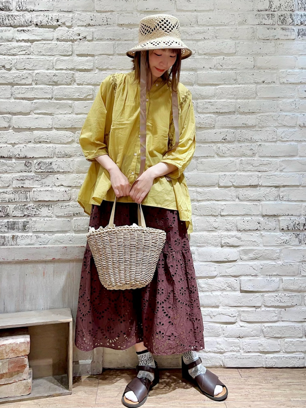 いっしき🐻のハット「リボンテープ付透かしバケットハット」を使ったコーディネート