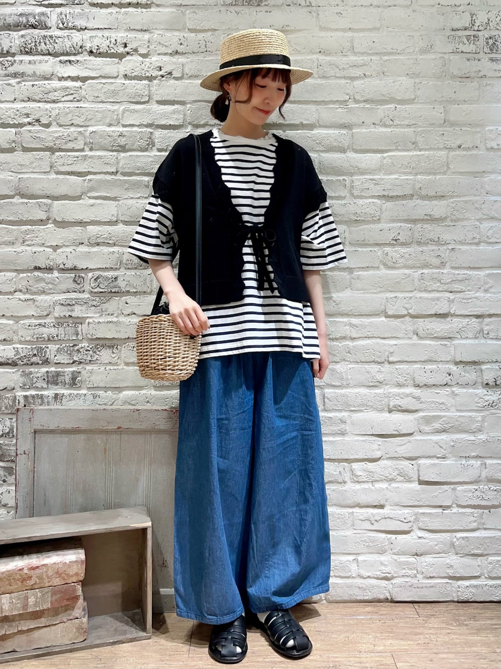 いっしき🐻のハット「ラフィアカンカン帽」を使ったコーディネート