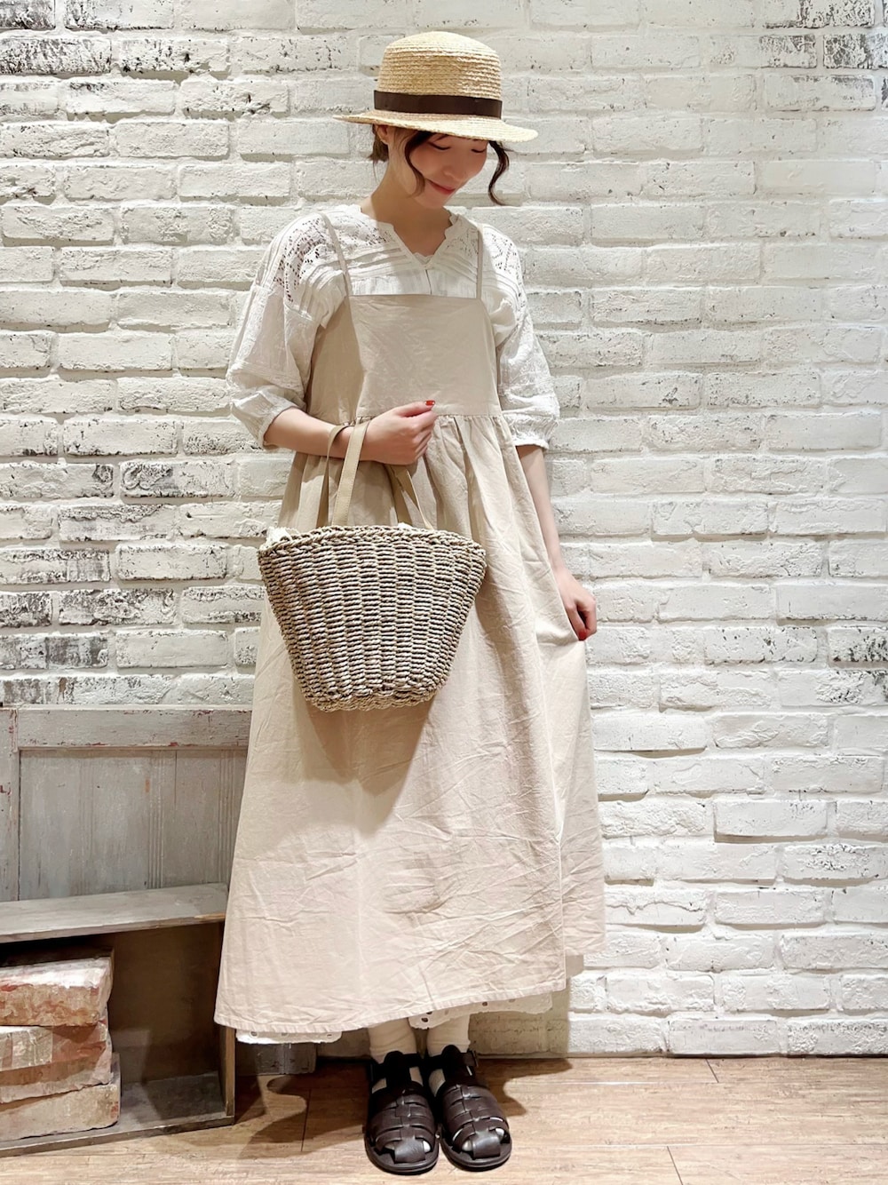 いっしき🐻のハット「ラフィアカンカン帽」を使ったコーディネート