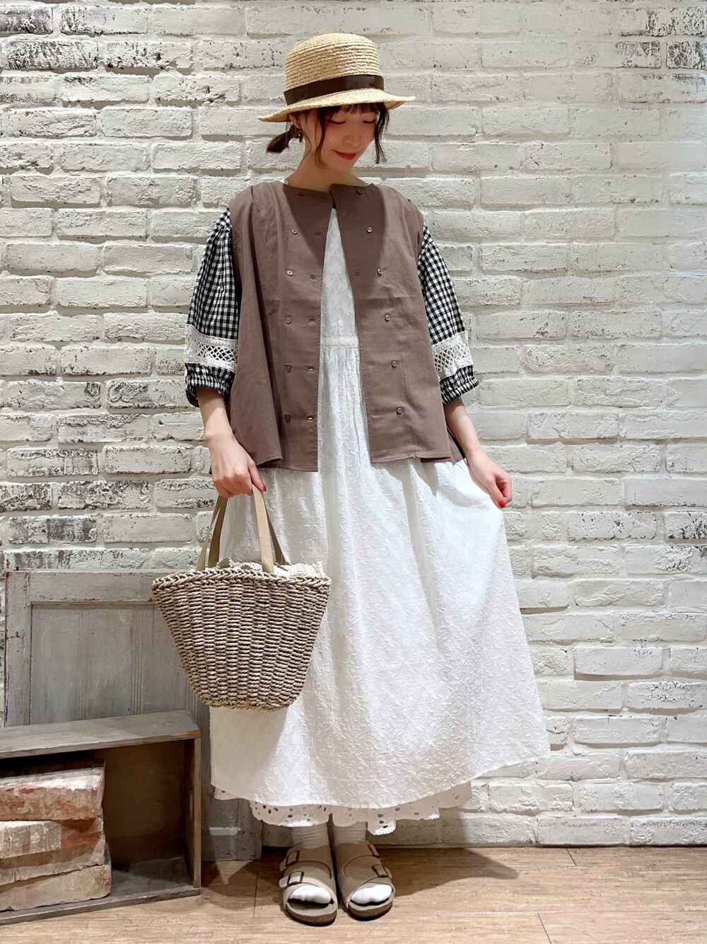 いっしき🐻のハット「ラフィアカンカン帽」を使ったコーディネート