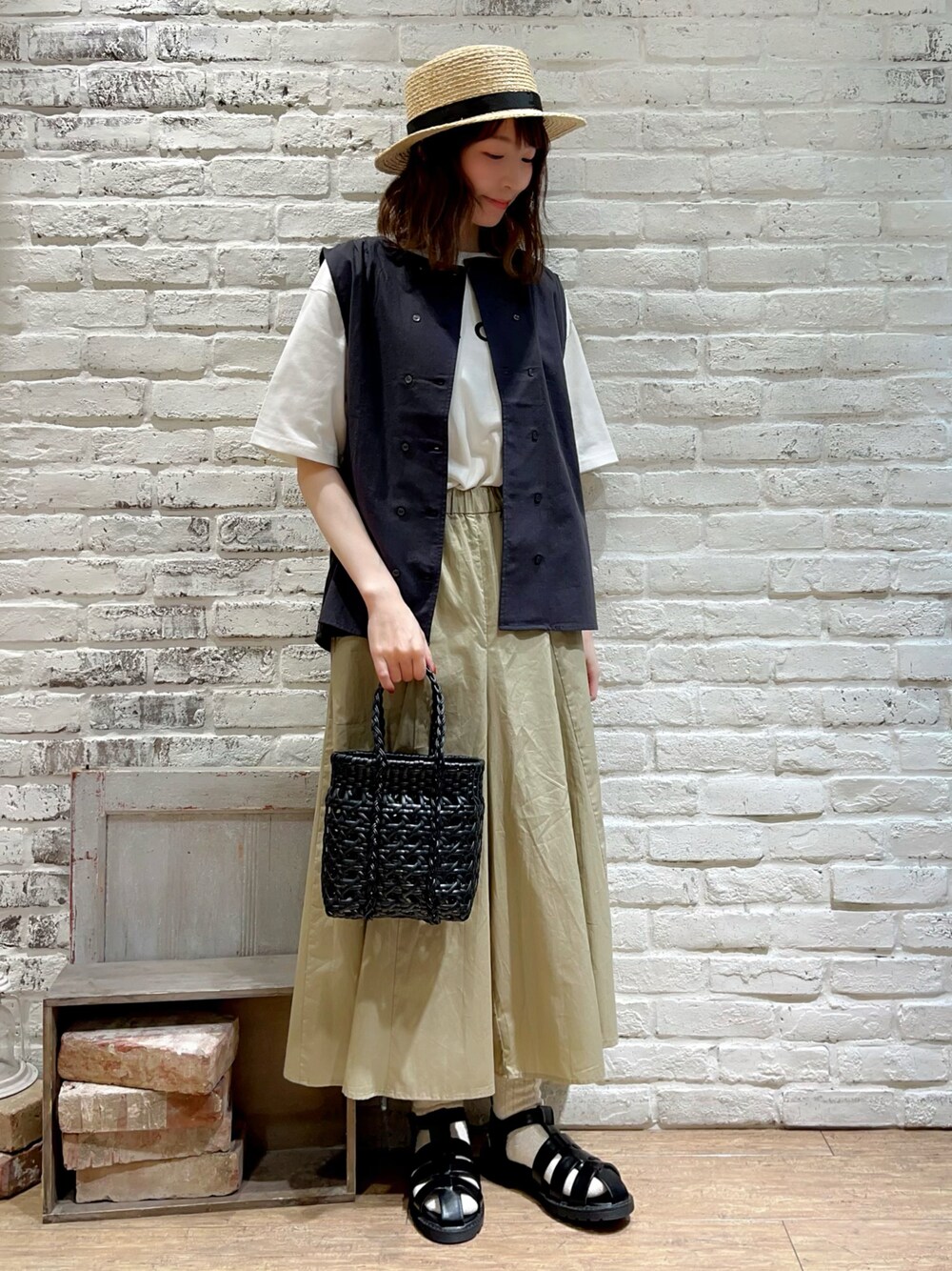 いっしき🐻のハット「ラフィアカンカン帽」を使ったコーディネート