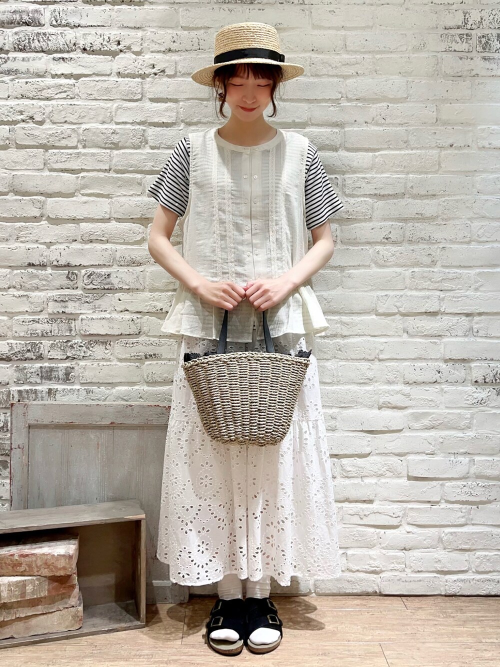 いっしき🐻のハット「ラフィアカンカン帽」を使ったコーディネート