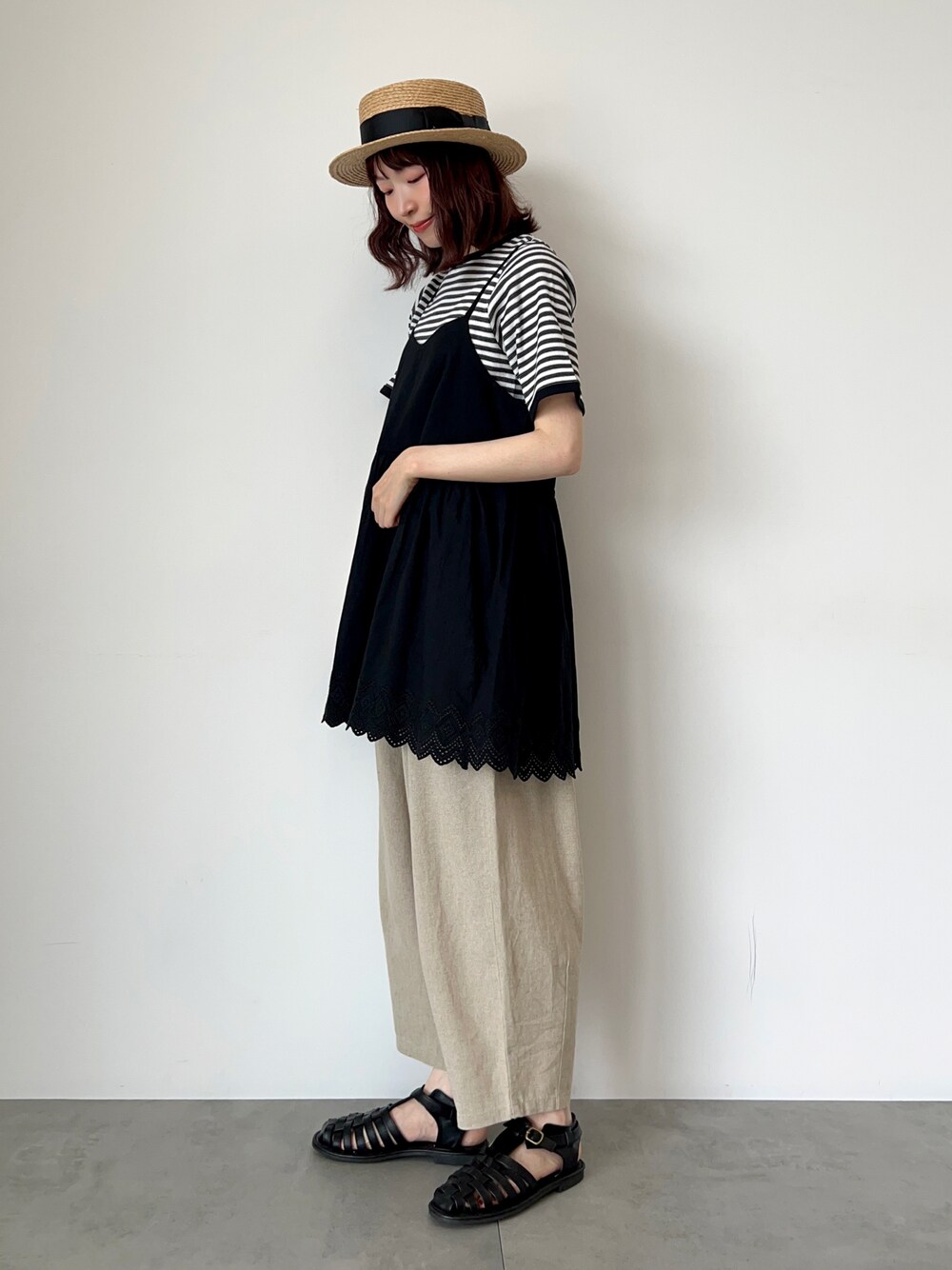 いっしき🐻のシャツ/ブラウス「裾スカラップ刺繍キャミチュニック」を使ったコーディネート